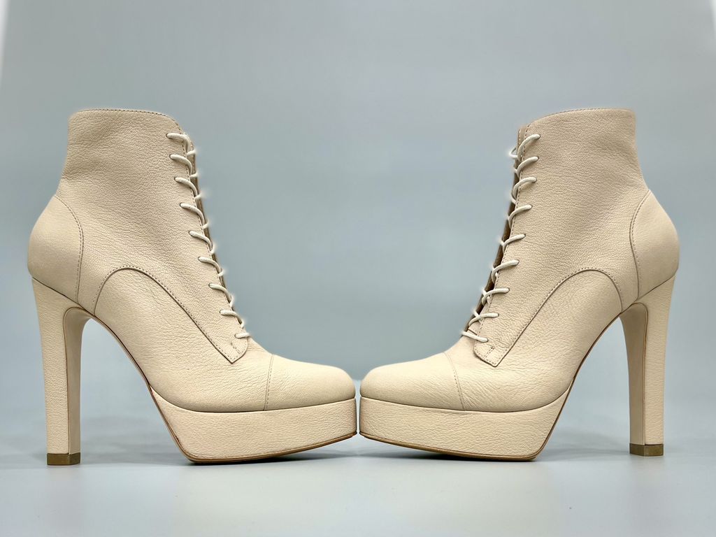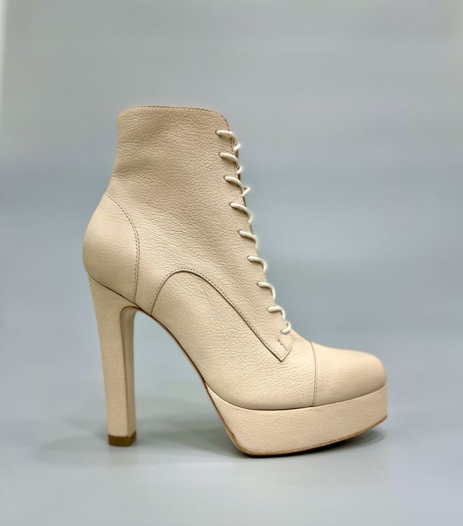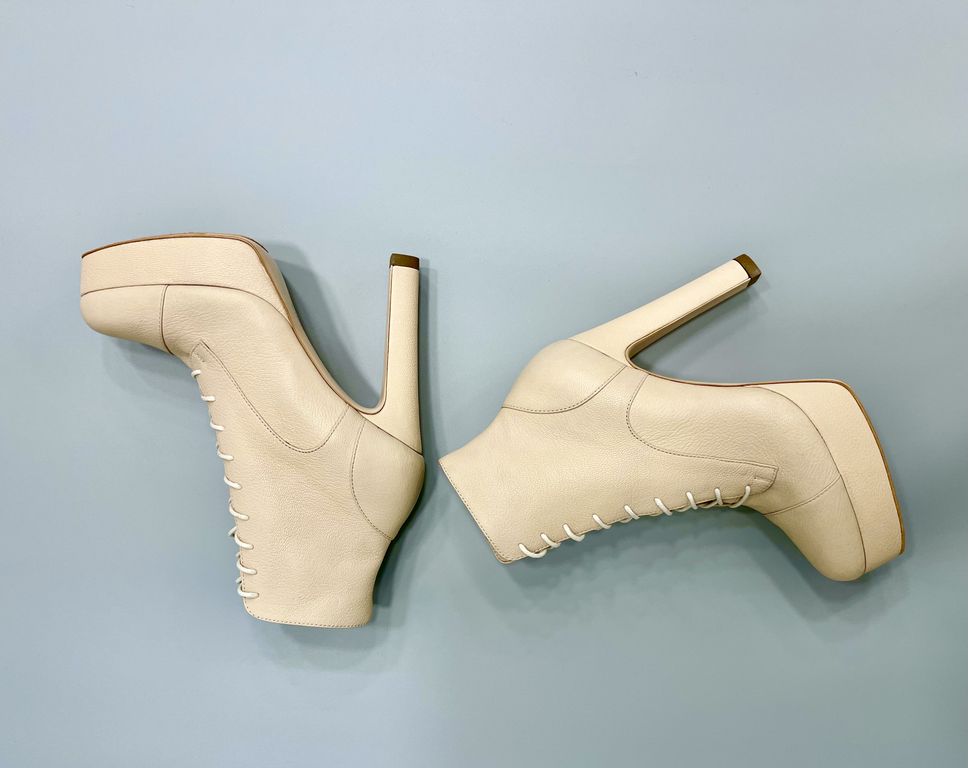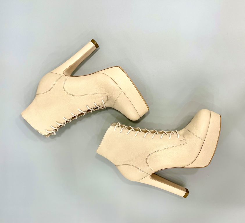 Особенности: удобная колодка для высококаблучной обуви (каблук 13см), красивый цвет кожи верха, шнуровка и молния, каблук и платформа производства нашей компании, кожаная подошва