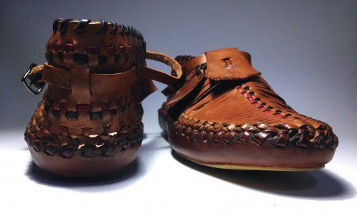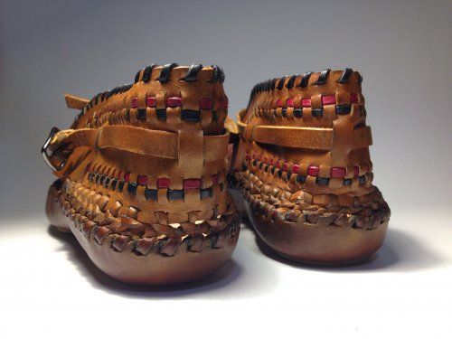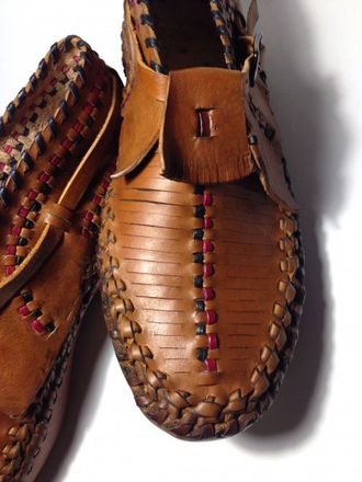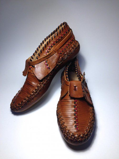 Особенности: полностью плетеная обувь из натуральной кожи, окрашена и затонирована специальными красками и защитными составами, подошва их натуральной плотной кожи (чепрак)