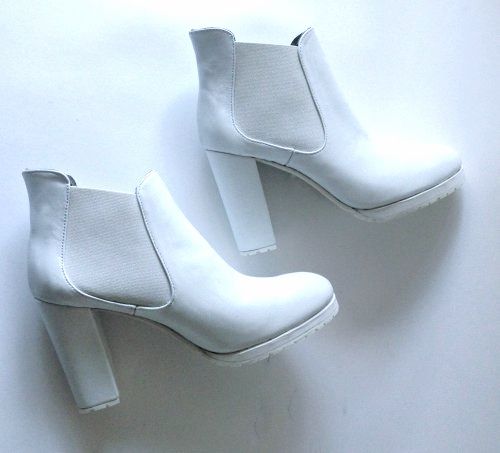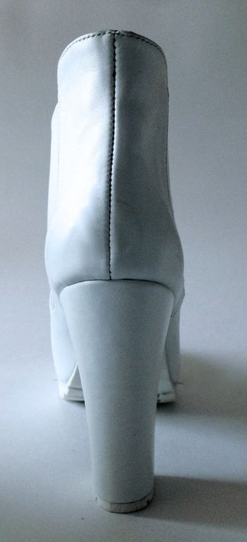 Особенности: натуральная белая кожа КРС, белые резинки по бокам, белая подошва с глубоким протектором, каблук и плато обтянуты кожей верха