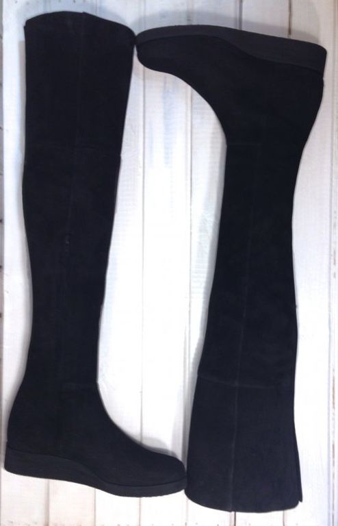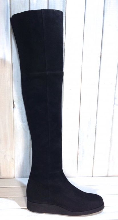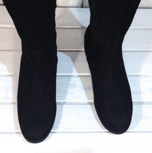 Особенности: высота обуви до середины бедра, скрытая резинка сзади для удобства, микропористая подошва легкая и амортизирующая при ходьбе