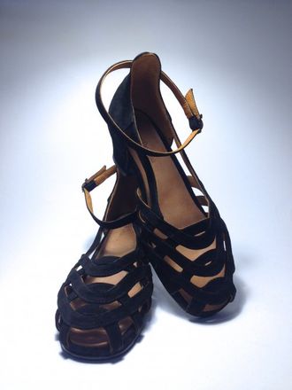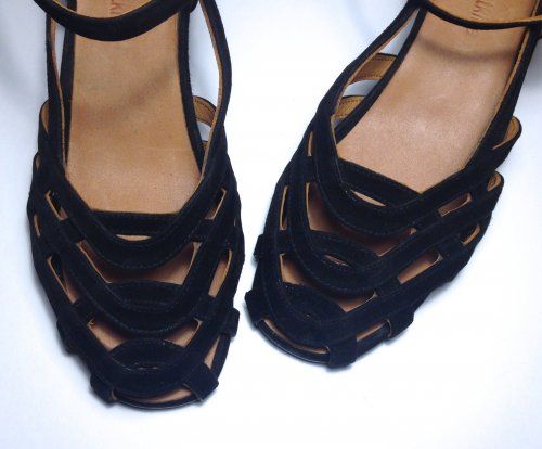 Особенности: красивый верх обуви надежно фиксирует стопу в области пальцев, в подъеме, в пятке и в лодыжке. Классический вечерний цвет кожи - черный, стильные пряжки (Италия) . Удобная мягко-упругая стелька, устойчивый каблук - шпилька. Подошва из натуральной кожи (чепрак). Каблук - дерево, ручная работа.