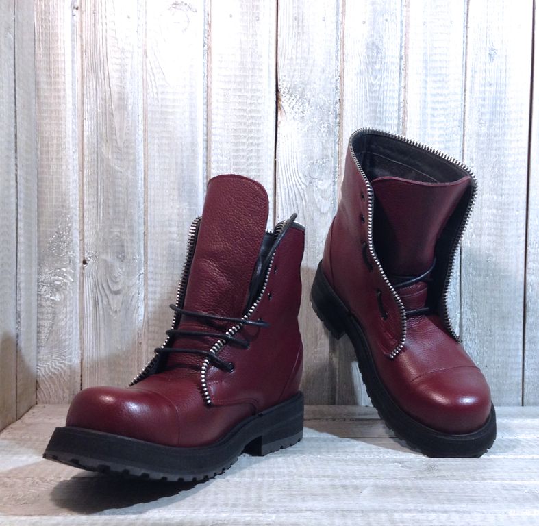 Особенности: верхний край берцев декорирован металлической молнией, подошва из легкой микропористой резины с тонкой прослойкой из кожволона (прорезиненный монолитный материал)