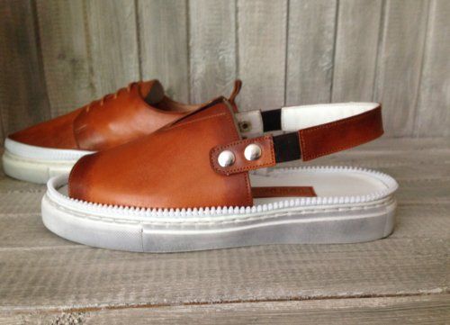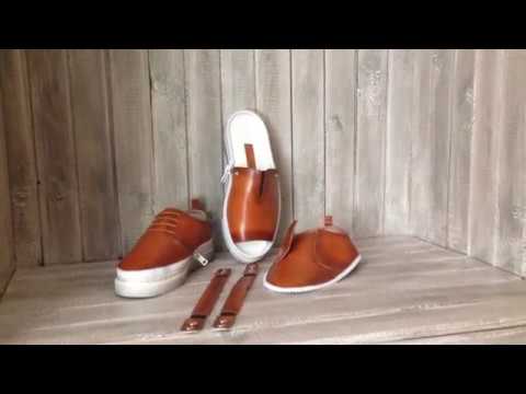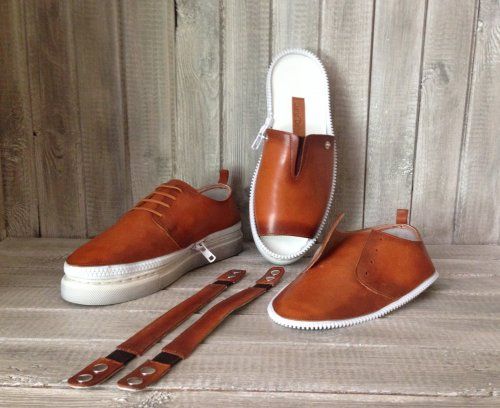 Фасон: основная модель - мюли с открытой носочной частью и отстегивающимися ремешками, съемный верх - полуботинки с передней шнуровкой «дерби»