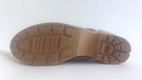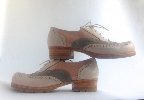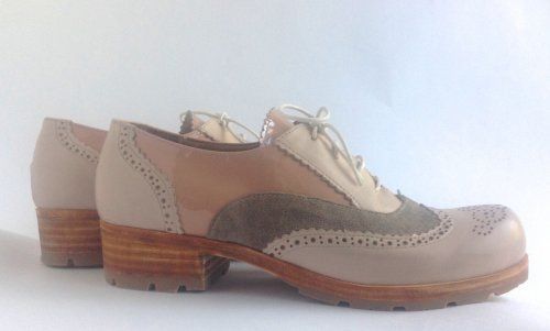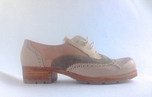 Особенности: оригинальное сочетание материалов и фактур верха, кожаная подошва, перфорация, фильерованные края деталей, грубый протектор на подошве