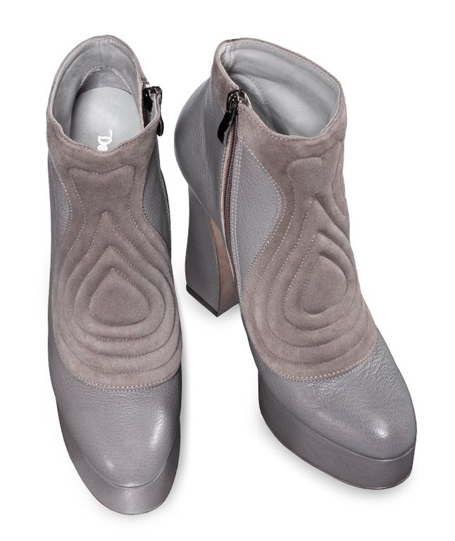 Ботильоны изготовлены с передней декоративной стеганной деталью на передней части верха обуви. Выполнены на удобной высококаблучной колодке с высотой приподнятости пяточной части (над опорой) - 95мм.